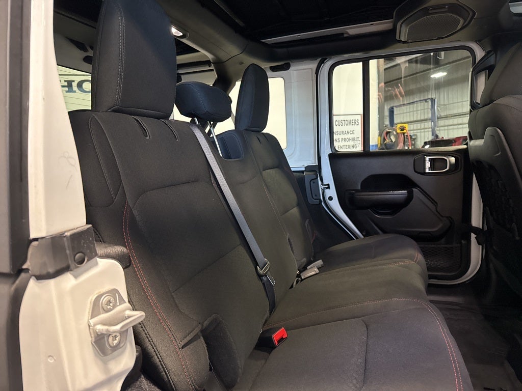 This vehicle Contains the following features and options: Cold Weather Group (Heated Front Seats and Heated Steering Wheel), LED Lighting Group (Daytime Running Lamps LED Accents, Front LED Fog Lamps, LED Premium Reflector Headlamps, and LED Taillamps), Quick Order Package 25R, Safety Group (Blind Spot & Cross Path Detection and ParkSense Rear Park Assist System), Steel Bumper Group (Steel Front Bumper and Steel Rear Bumper), Trail Rail Management System (Cargo Compartment Floor Mat), Xtreme Recon 35 Tire Package (35 Tire Suspension, Anti-Lock 4-Wheel Disc Perf Brakes, Dana M210 Wide HD Tube Front Axle, MOPAR Hinge-Gate Reinforcement, Wheel Flare Extensions, and Wheels: 17 x 8 Beadlock Capable), 4-Wheel Disc Brakes, 9 Speakers, ABS brakes, Air Conditioning, AM/FM radio: SiriusXM, Apple CarPlay/Android Auto, Auto-dimming Rear-View mirror, Automatic temperature control, Aux Battery, Body Color Rubicon Highline Flare, Brake assist, Compass, Corning Gorilla Glass, Delay-off headlights, Driver door bin, Driver vanity mirror, Dual front impact airbags, Dual front side impact airbags, Electronic Stability Control, Emergency communication system: SiriusXM Guardian, Engine Oil Cooler, Front anti-roll bar, Front Bucket Seats, Front Center Armrest w/Storage, Front dual zone A/C, Front fog lights, Front reading lights, Fully automatic headlights, Garage door transmitter, Heated door mirrors, Illuminated entry, Integrated roll-over protection, Leather steering wheel, Low tire pressure warning, Manufacturer's Statement of Origin, MOPAR All-Weather Floor Mats, MOPAR Cargo Tub Liner, MOPAR Doors Off Mirror Kit, MOPAR Plastic Door Sill Guards, Navigation System, Non-Lock Fuel Cap w/o Discriminator, Occupant sensing airbag, Outside temperature display, Panic alarm, ParkView Rear Back-Up Camera, Passenger door bin, Passenger vanity mirror, Performance Suspension, Power door mirrors, Power steering, Power Top Quarter Window Storage Bag, Power windows, Premium Cloth Low-Back Bucket Seats, Radio data system, Radio: Uconnect 4C Nav w/8.4 Display, Rear anti-roll bar, Rear reading lights, Rear Window Defroster, Rear Window Wiper/Washer, Remote keyless entry, Remote Start System, Removable Rear Quarter Windows, Security system, Sky 1-Touch Power Top, Speed control, Split folding rear seat, Steering wheel mounted audio controls, Stop-Start Dual Battery System, Tachometer, Telescoping steering wheel, Tilt steering wheel, Traction control, Trip computer, Variably intermittent wipers, Voltmeter, and Wheels: 17 x 7.5 Machined w/Black Pockets.