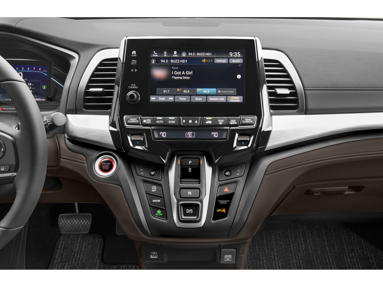 - Radio: 160-Watt AM/FM/HD/SiriusXM Audio System -inc: 7 speakers including subwoofer, 8" color touchscreen display, Bluetooth® HandsFreeLink, Bluetooth® streaming audio, MP3/auxiliary input jack, Radio Data System (RDS), Speed-Sensitive Volume Compensation (SVC), CabinControl remote compatibility, HondaLink, Apple CarPlay compatibility, Android Auto compatibility, SMS text message function, 3 2.5-amp USB charging ports, 2.5-amp USB smartphone/audio interface, illuminated steering wheel-mounted audio controls and black fin-type roof-mounted antenna, All SiriusXM services require a subscription, sold separately by SiriusXM after the trial period, If you decide to continue service, the plan you choose will automatically renew at the then-current rates, Fees and taxes apply, See the SiriusXM Customer Agreement & Privacy Policy at www.siriusxm.com for full terms and how to cancel, which includes calling 1-866-635-2349, Available in the 48 contiguous U.S, and D.C, Some services and features are subject to device capabilities and location restrictions, All fees, content and features are subject to change, SiriusXM, Pandora and all related logos are trademarks of Sirius XM Radio Inc, and its respective subsidiaries