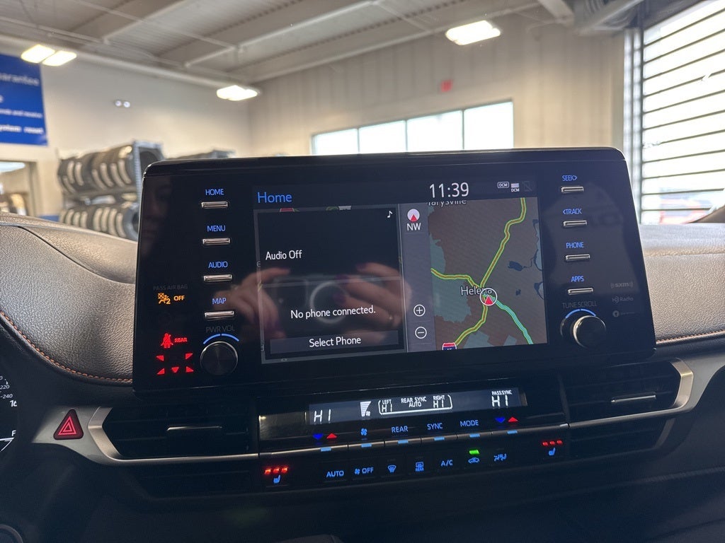 This vehicle Contains the following features and options: 3rd row seats: split-bench, 4-Wheel Disc Brakes, 8 Speakers, ABS brakes, Air Conditioning, All Weather Floor Liners (TMS), Alloy wheels, AM/FM radio: SiriusXM, Apple CarPlay/Android Auto, Auto High-beam Headlights, Auto-dimming door mirrors, Auto-dimming Rear-View mirror, Automatic temperature control, Axle Ratio: TBA, Brake assist, Bumpers: body-color, Compass, Cross Bars (TMS), Delay-off headlights, Driver door bin, Driver vanity mirror, Driver's Seat Mounted Armrest, Dual front impact airbags, Dual front side impact airbags, Electronic Stability Control, Emergency communication system: Safety Connect (3-year trial), Exterior Parking Camera Rear, Four wheel independent suspension, Front anti-roll bar, Front Bucket Seats, Front dual zone A/C, Front fog lights, Front Heated Bucket Seats, Front reading lights, Fully automatic headlights, Garage door transmitter: HomeLink, Heated door mirrors, Heated front seats, Illuminated entry, Knee airbag, Lane Departure Warning System, Leather Shift Knob, Leather steering wheel, Low tire pressure warning, Mudguards (TMS), Navigation System, Occupant sensing airbag, Outside temperature display, Overhead airbag, Overhead console, Panic alarm, Passenger door bin, Passenger seat mounted armrest, Passenger vanity mirror, Power door mirrors, Power driver seat, Power Liftgate, Power moonroof, Power passenger seat, Power steering, Power windows, Radio data system, Radio: Premium Audio w/Navigation, Rear air conditioning, Rear anti-roll bar, Rear dual zone A/C, Rear reading lights, Rear side impact airbag, Rear window defroster, Rear window wiper, Reclining 3rd row seat, Remote keyless entry, SofTex Seat Trim, Speed control, Speed-sensing steering, Split folding rear seat, Spoiler, Steering wheel mounted audio controls, Tachometer, Telescoping steering wheel, Tilt steering wheel, Traction control, Trip computer, Turn signal indicator mirrors, Variably intermittent wipers, and Wheels: 18 Dark Alloy.