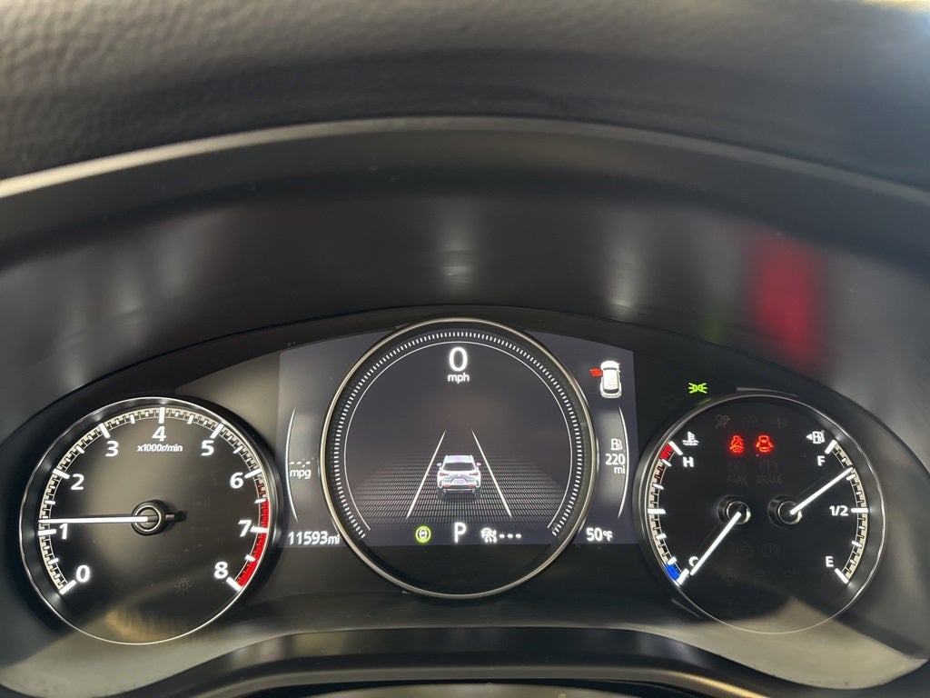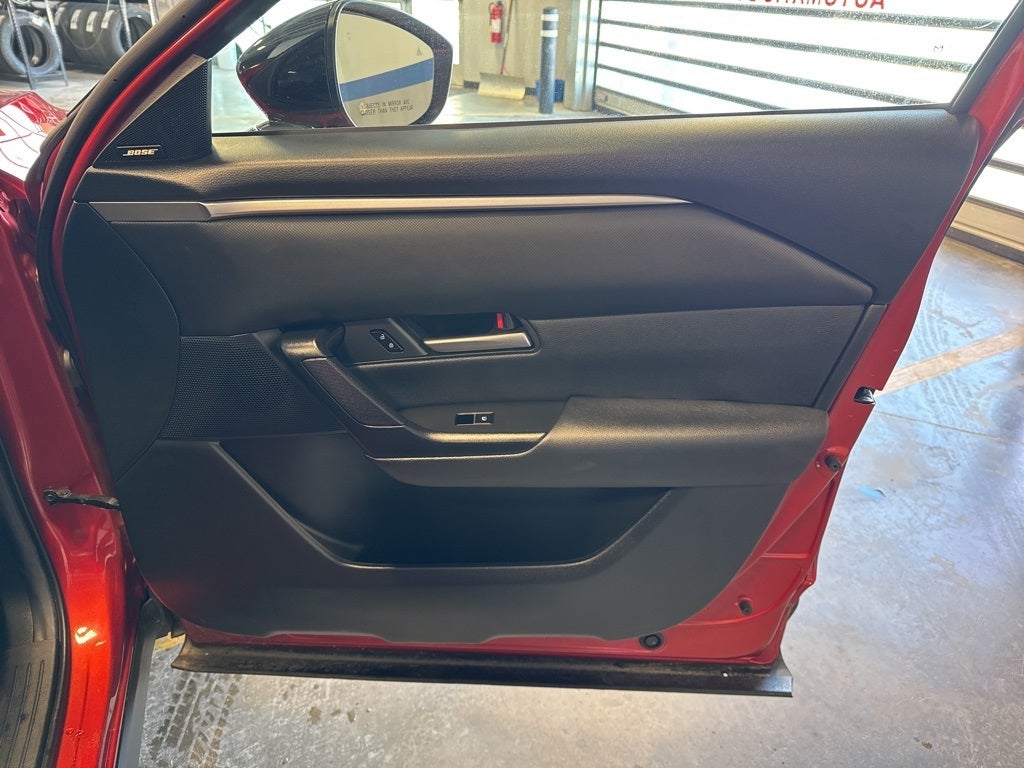 This vehicle Contains the following features and options: 12 Speakers, 4-Wheel Disc Brakes, ABS brakes, Air Conditioning, Alloy wheels, AM/FM radio: SiriusXM, AppLink/Apple CarPlay and Android Auto, Auto High-beam Headlights, Automatic temperature control, Brake assist, Bumpers: body-color, Delay-off headlights, Driver door bin, Driver vanity mirror, Dual front impact airbags, Dual front side impact airbags, Electronic Stability Control, Emergency communication system: MAZDA CONNECT, Exterior Parking Camera Rear, Front anti-roll bar, Front Bucket Seats, Front Center Armrest, Front dual zone A/C, Front reading lights, Front wheel independent suspension, Fully automatic headlights, Half Leatherette Seat Trim, Heated door mirrors, Heated front seats, Heated Front Seats w/3 Level Adjustment, Illuminated entry, Knee airbag, Leather Shift Knob, Leather steering wheel, Low tire pressure warning, Occupant sensing airbag, Outside temperature display, Overhead airbag, Overhead console, Panic alarm, Passenger door bin, Passenger vanity mirror, Power door mirrors, Power driver seat, Power Liftgate, Power moonroof, Power steering, Power windows, Radio data system, Radio: AM/FM/HD Bose 12-Speaker Audio Sound System, Rain sensing wipers, Rear seat center armrest, Rear window defroster, Rear window wiper, Remote keyless entry, Soul Red Crystal Metallic Paint Charge, Speed control, Speed-sensing steering, Split folding rear seat, Spoiler, Steering wheel mounted audio controls, Tachometer, Telescoping steering wheel, Tilt steering wheel, Traction control, Trip computer, Turn signal indicator mirrors, Variably intermittent wipers, and Wheels: 17 x 7J Aluminum Alloy Black Metallic Finish.